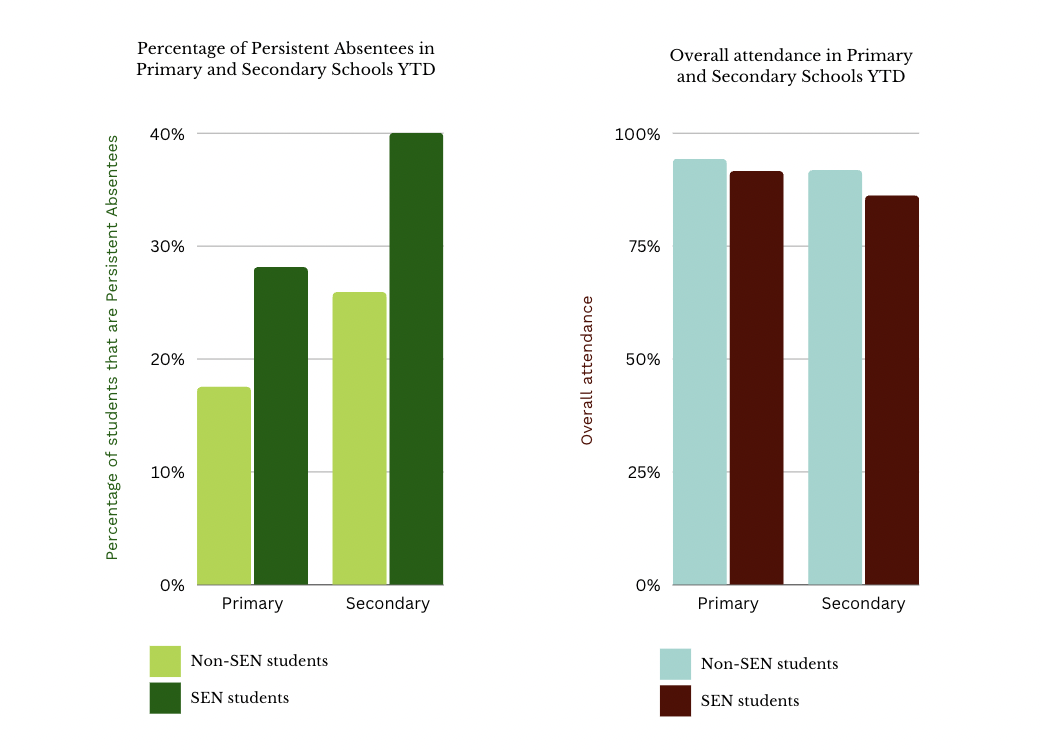 The same can be said about overall attendance of SEN students vs. non-SEN students: