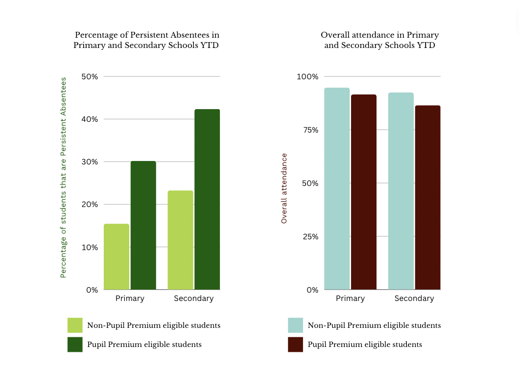Overall attendance was also significantly lower for Pupil Premium eligible students across both phases: