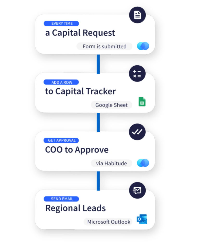 With Habitude, MATs can capture any of the trust-wide processes which flow between different systems, people, and datasets, and turn them into workflows which run automatically – keeping everyday work flowing, and your central team focused on the important stuff.
