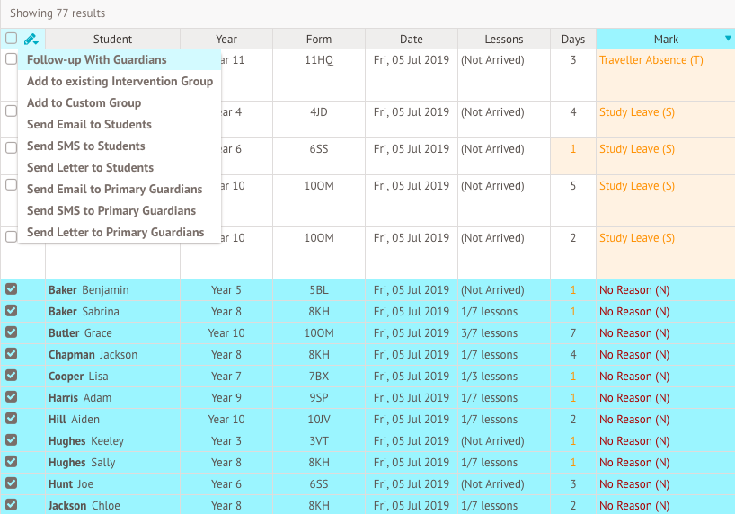 Your MIS can also help to reduce data with quick group selection. For example, in Arbor you can select absentees from your register and instantly send emails to their primary guardians with the help of our mail merge tool. You can even use a pre-made message template so you won’t have to type a single word!