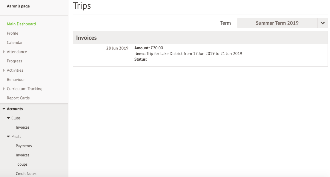 Image 2: How parents can view all payments and invoices from Arbor’s Parent Portal