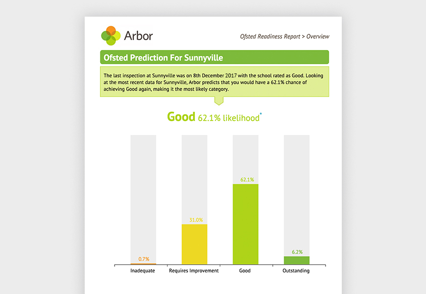 Arbor Insight Reports – in particular the Ofsted Readiness Report – are intended to support you in understanding the two key questions above. It should prompt you to consider your strengths and weaknesses and help you dig beyond the headlines to question what might really be going on. This is crucial since the strength of leadership and management is largely driven by “the rigour and accuracy of self-evaluation and how well it leads to planning that secures continual improvement.” (School Inspection Handbook, p. 41)