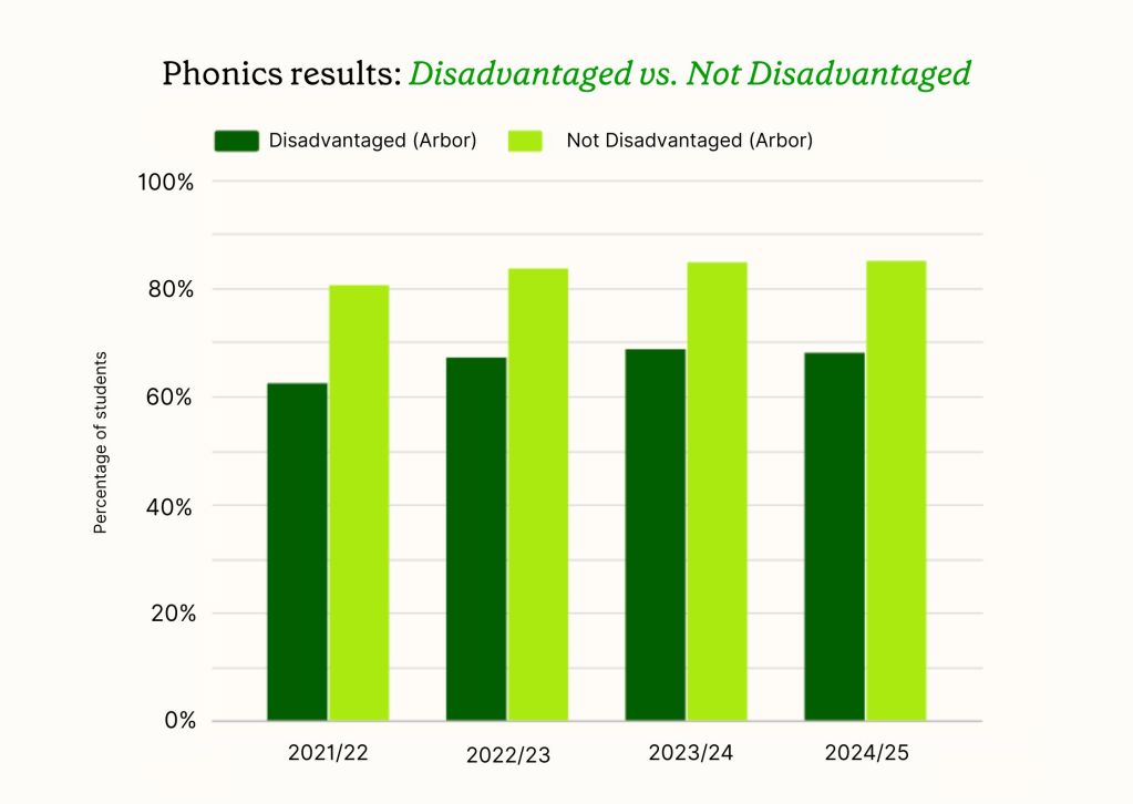 These results are based on data from 180,182 Year 1 students across 4,938 primary schools in the Arbor community, representing a substantial sample of the national picture.